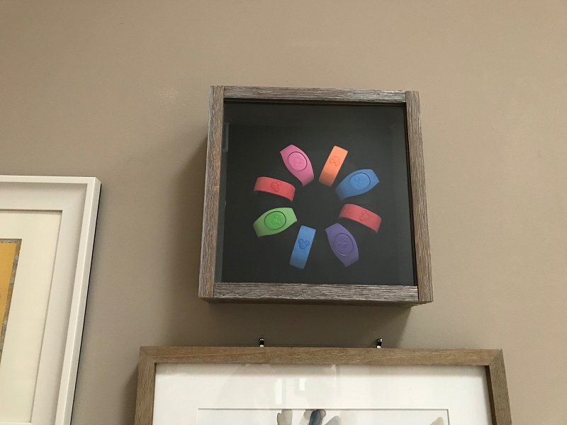 The neutral backdrop works with anything, and the multiple MagicBands make me smile. There sure are a lot of happy Disney memories incorporated into that one piece of wall art!