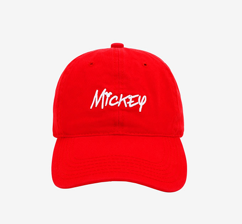 Moving on to hats, sometime simple is better. It doesn’t get any simpler than this red Mickey signature baseball cap. It’s available at BoxLunch for under $20.